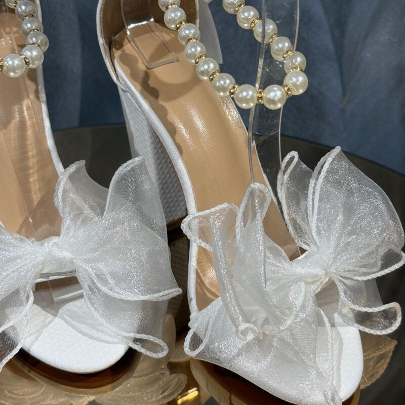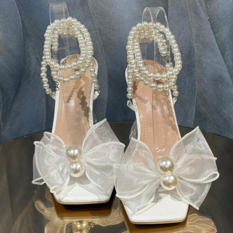 İncili Fiyonklu Şeffaf Topuklu Ayakkabı