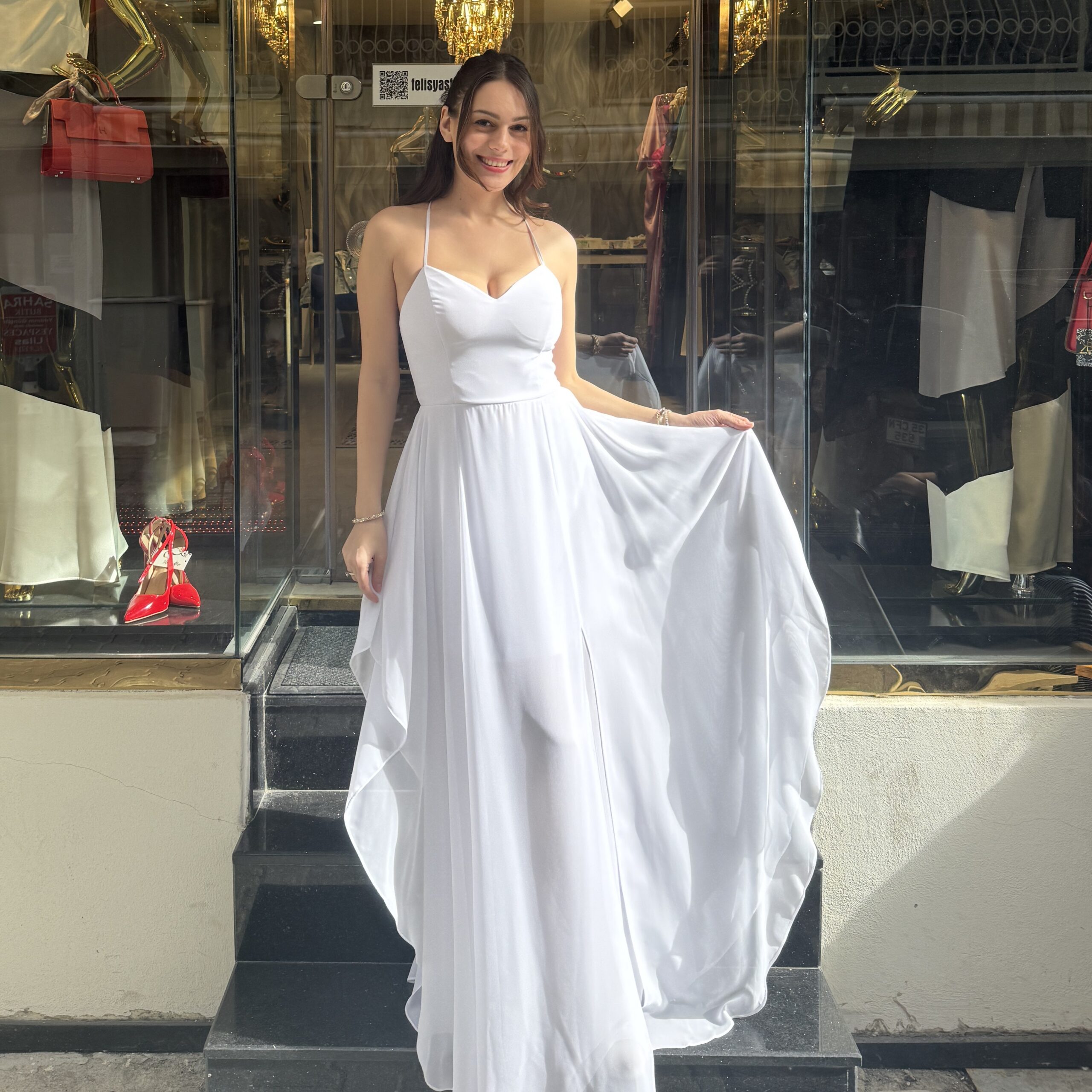 İnce Askılı Şifon Abiye