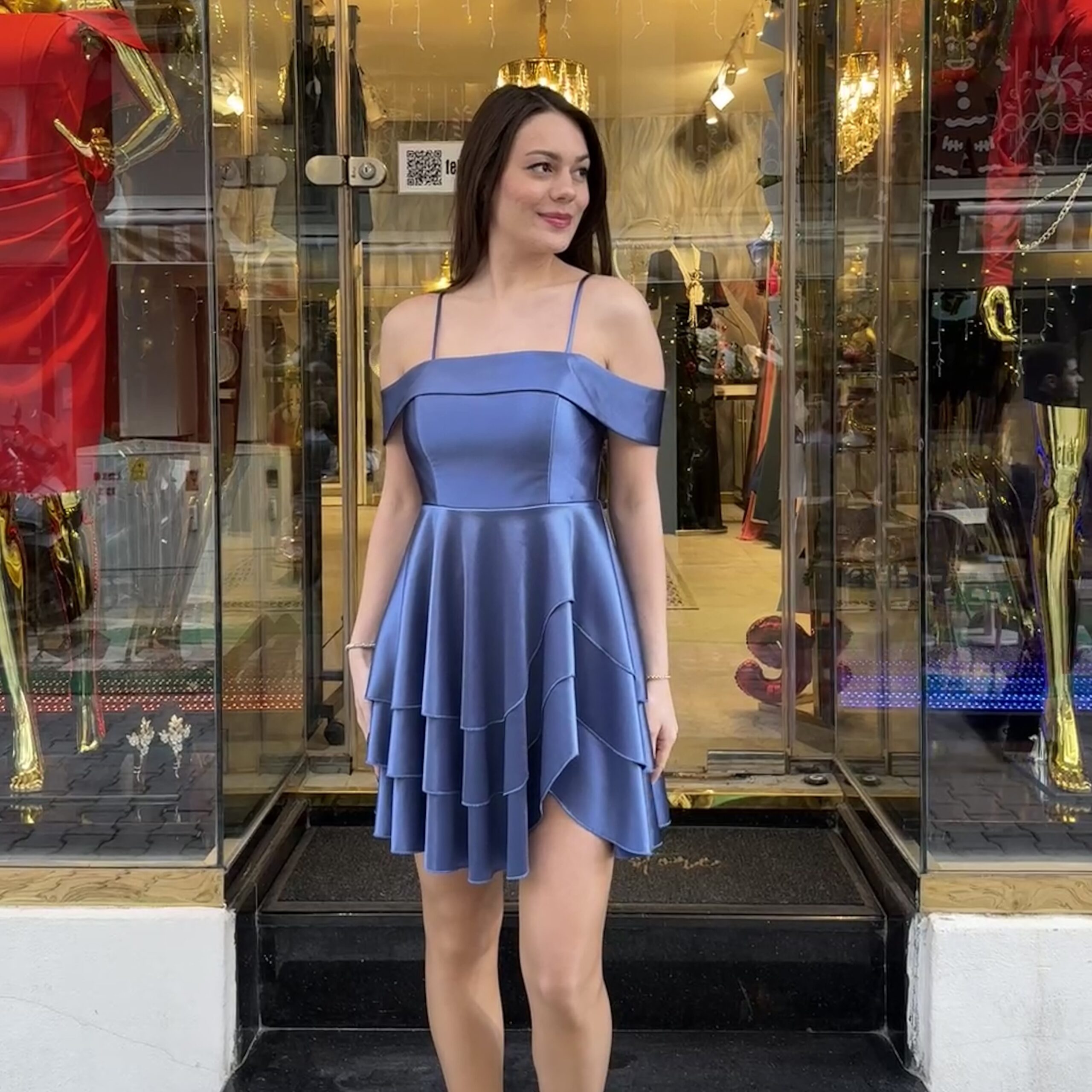 Sol Bacak Dekolteli 3 Kat Etekli Kısa Abiye
